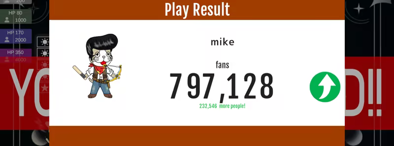 After battles, level up with number of fans!