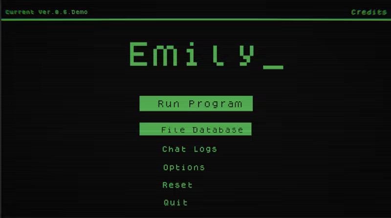 Hidden inside an old program somewhere lies Emily, a long forgotten AI, lonely. She seems to know way more than she lets on, it's up to you to discover what secrets she's hiding and to unearth the mysteries that reside deep within the program. How much does she really know? There are too many unaswered questions and the more you look the more seem to come up