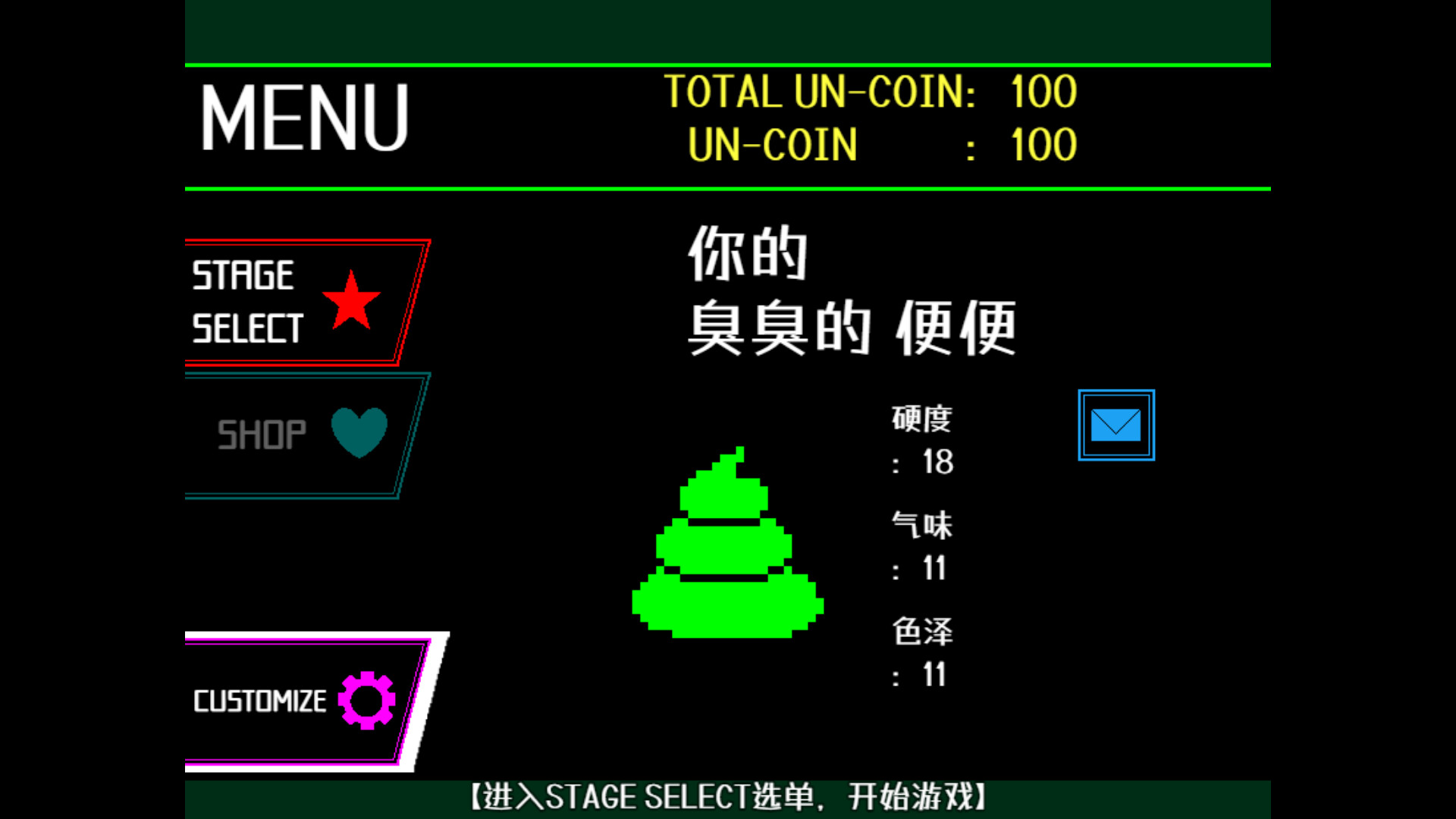 消耗在关卡中收集到的“UN-COIN”,可以进行扭蛋以获得便便外观的定制物品,或是解锁更高难度的关卡。