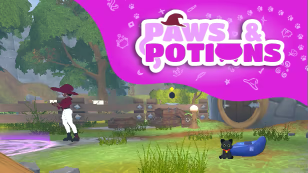 In Paws & Potions, play as a kitten in third-person view, racing against time to help Emília the witch prepare potions before nightfall! Deliver the correct ingredients as quickly as possible and discover the world around you.