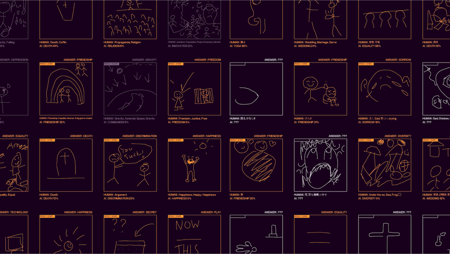 By embracing the medium of games, Deviation Game aims to use AI as a collaborative tool that seeks not to replace human creativity but to enhance it. Through the game, players learn to express themselves in new ways to deviate from what the AI has already learned, making for a fun and brain-teasing party experience, where you’ll create things no one has ever seen before! Flipping Alan Turing’s revolutionary 1950 Imitation Game on its head, Deviation Game encourages players to fool the AI instead of the AI trying to fool them.
