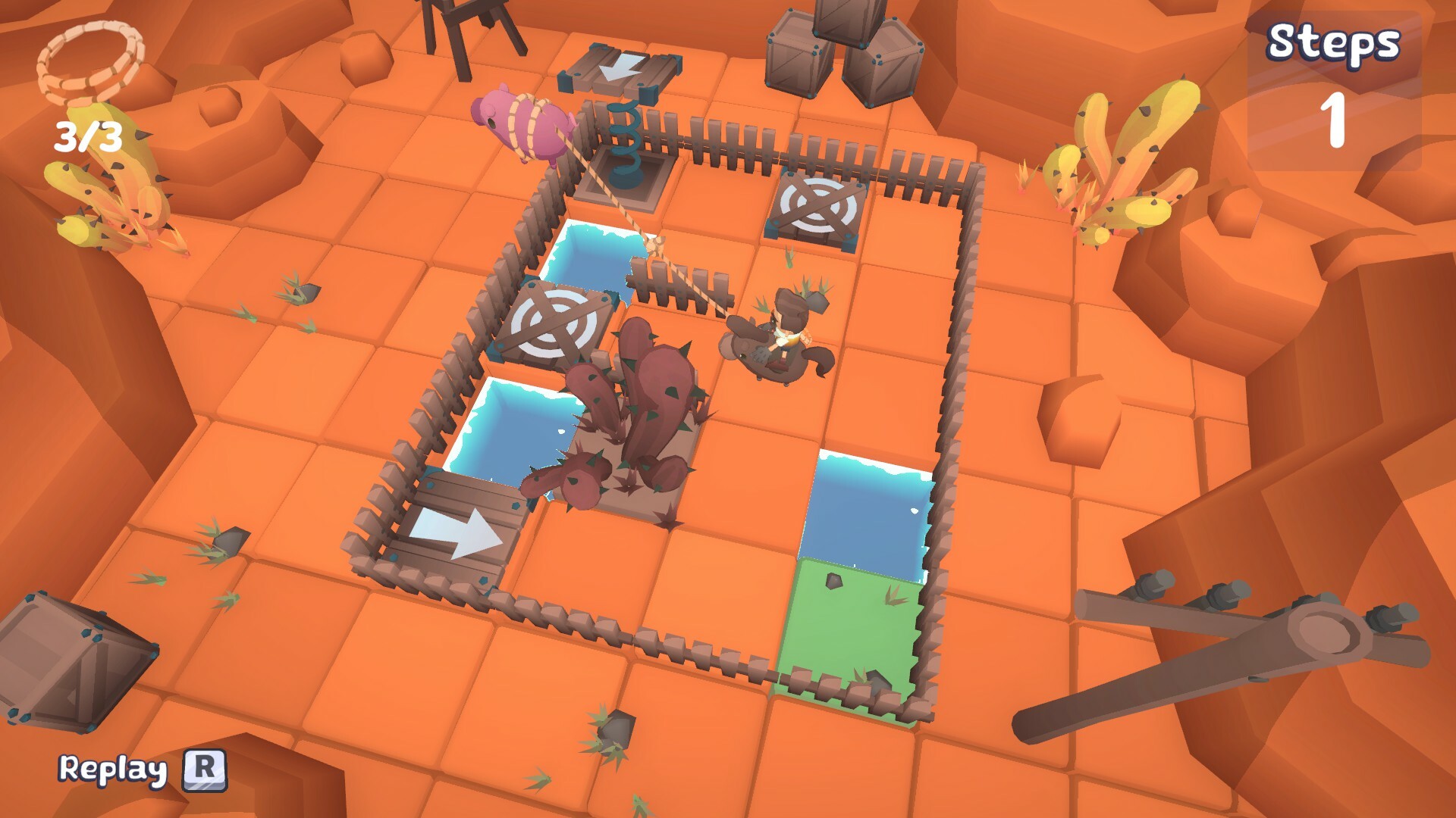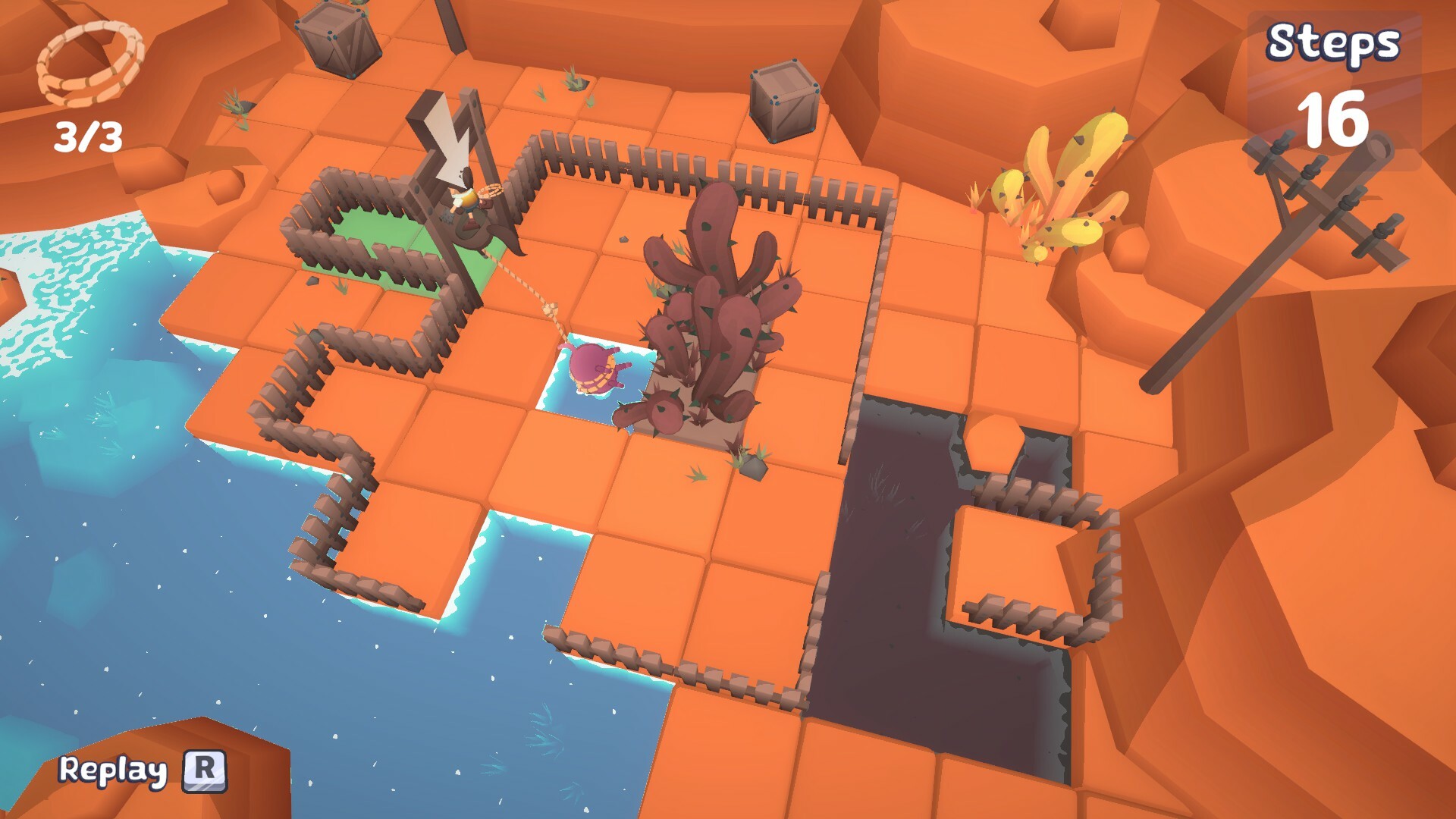 Hop into the desert biome in the demo version to play 20 handcrafted levels where you can hone your lasso skills for the big release, with additional special tiles, biomes, and more!