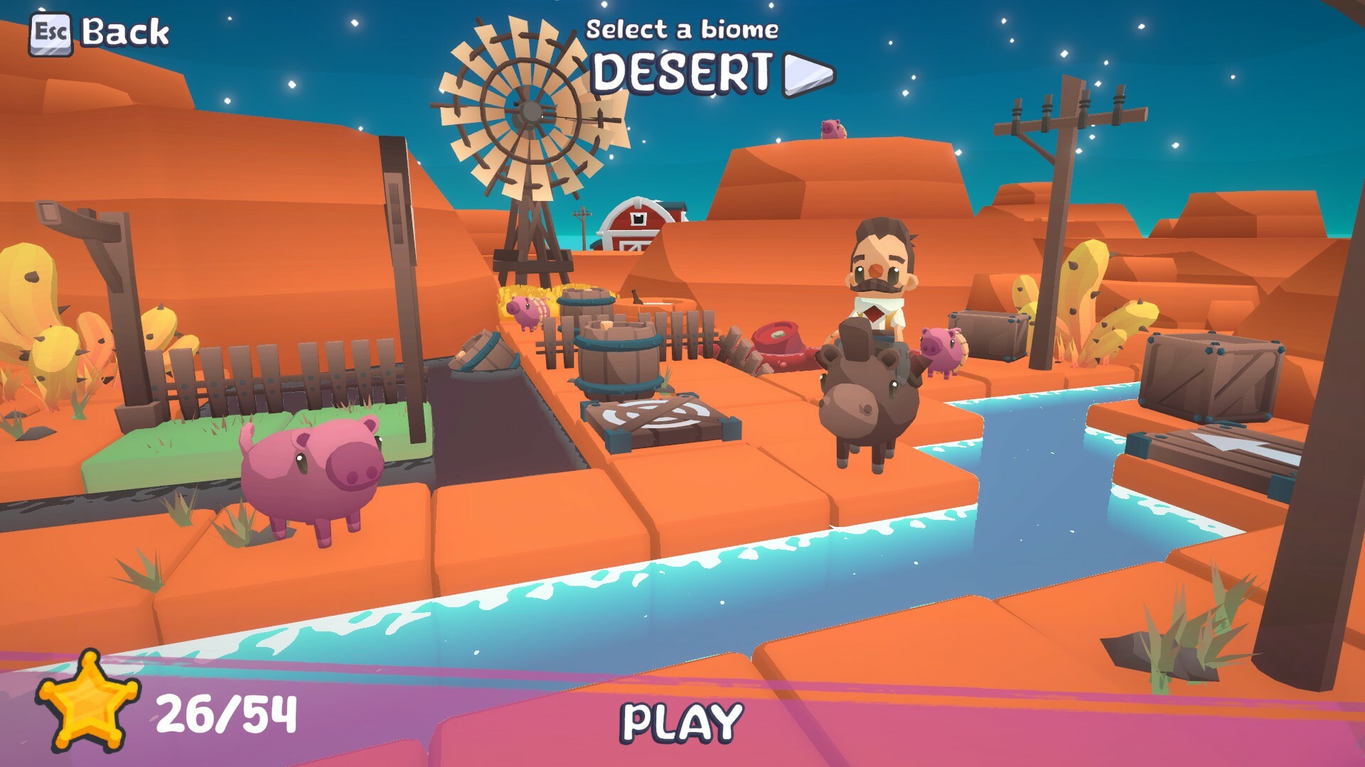 Hogtie takes you on an award-winning journey as you step into the boots of Ted, a hero of the wild west whose trusty lasso is the key to success. This Sokoban puzzle game challenges you to think like a real wrangler with each level tasking you to round up escaped piggies scattered across different biomes.