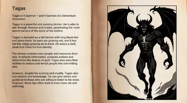 The greatest book on demonology has fallen into your hands. Decipher the secret names of demons and subjugate them to your will.