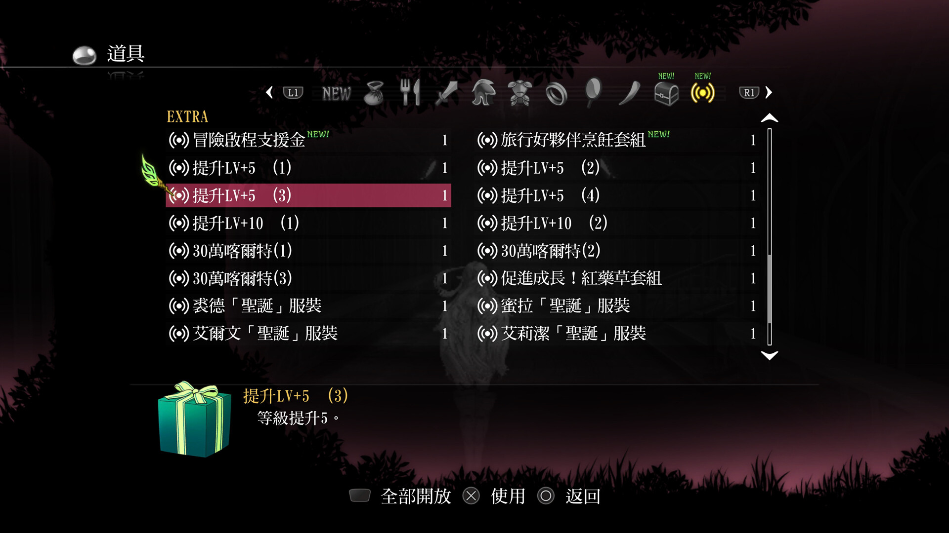 可以讓我方全員的等級+5的「無盡傳奇 Remastered」遊戲內道具。