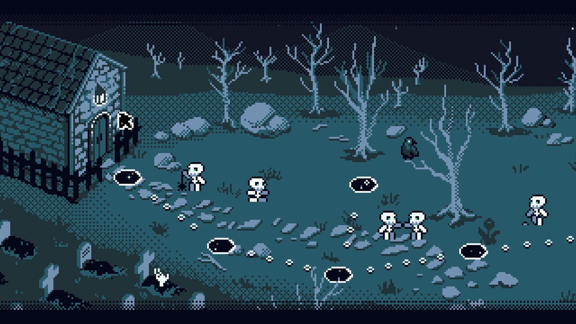 Grooveyard is a chill puzzle game brimming with humor and skeletons. Use your magical powers to manipulate walls and guide your skeletal minions to freedom. Enjoy a mix of strategy and rhythm as you uncover the secrets of your bodiless origins.