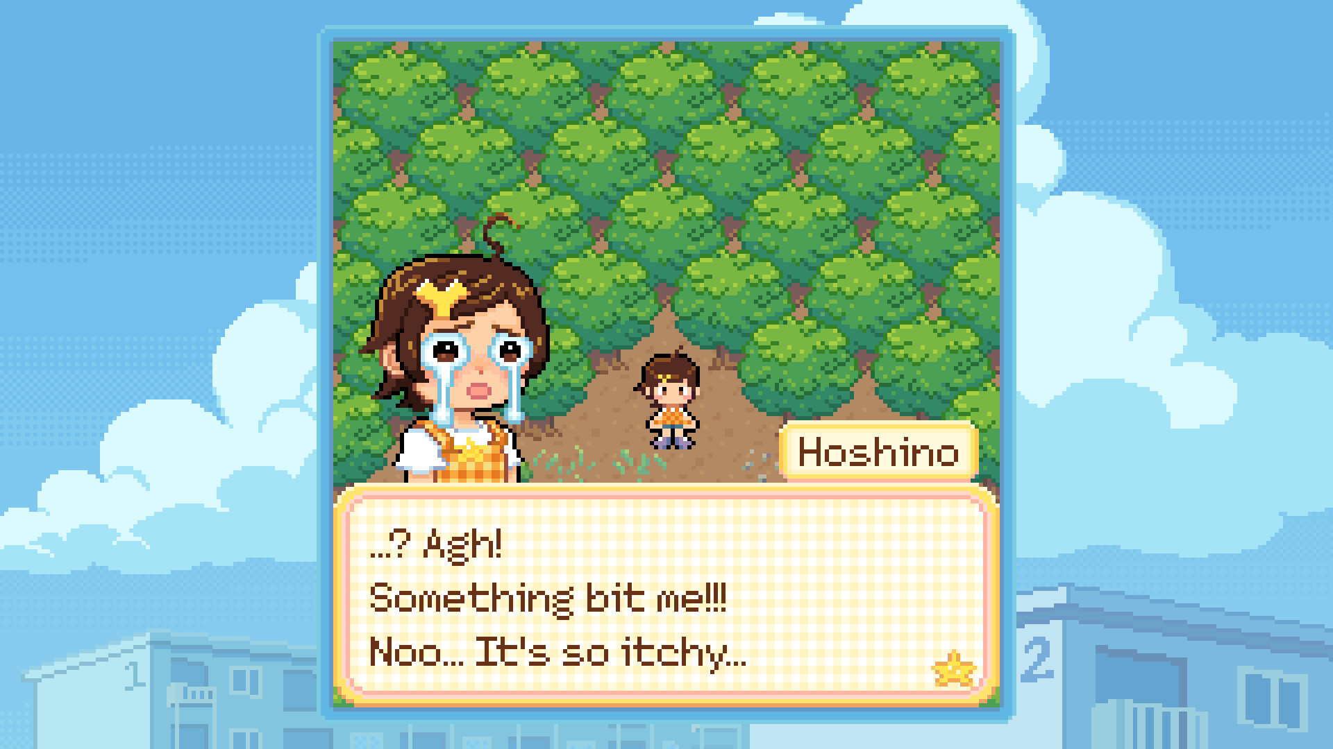 Hoshino's Dad made a special kind of internet just for neighbors — the NeighborNet. Search keywords to find pages to surf, and discover more about the strangers living in your danchi. Play minigames, or just “Say Hi!”