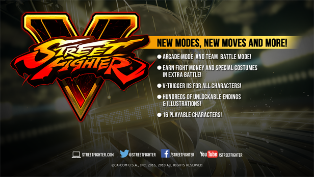 This version of Street Fighter V displays the “Arcade Edition” title screen and includes Arcade Mode, Team Battle Mode and the online-enabled Extra Battle Mode, where you can earn rewards, XP and Fight Money! Fight Money can be used to purchase additional characters, costumes, stages and more!