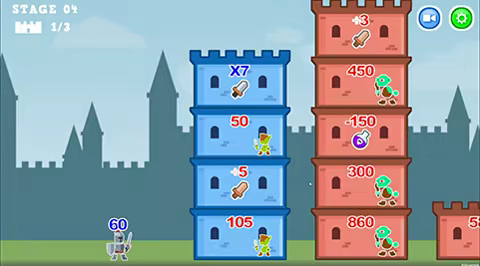 “Number Tower” is a casual puzzle game that uses math equations, inspired by those old fake game ads on the internet. Clear levels by picking the best route between each tower to get the highest score using basic arithmetic functions: addition, subtraction, multiplication, and division. A new “Pair” mode will challenge you to juggle between two numbers using the same functions, but with a “Shield” enemy in your way. We have prepared 120 levels and 2 modes for you to test your wit and intelligence in this game.