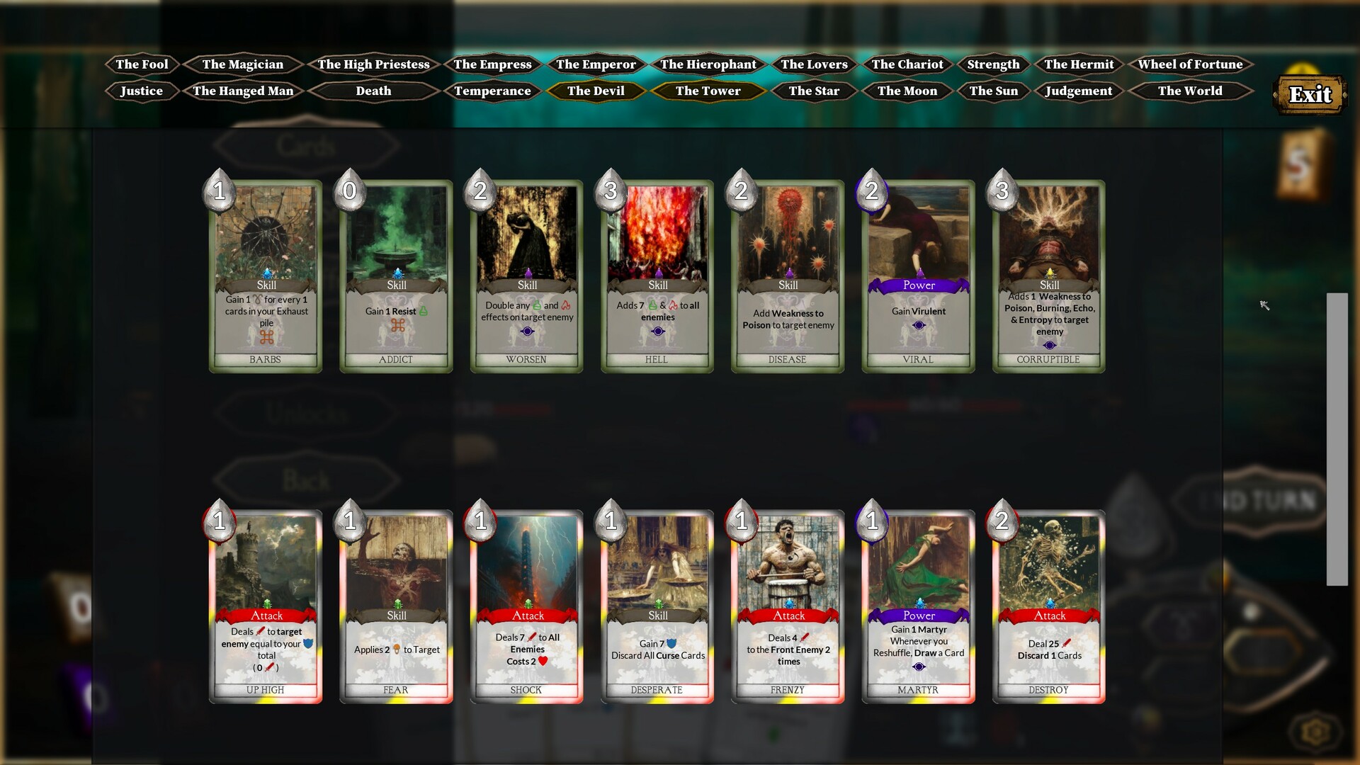 • Dynamic Deck-Building with Deep Tarot Integration: Craft your deck from over 1,000 cards, drawing from 22 Major Arcana sets and unique character cards. Combine cards in infinite ways, exploring synergies and powerful combos to adapt to each new threat.
