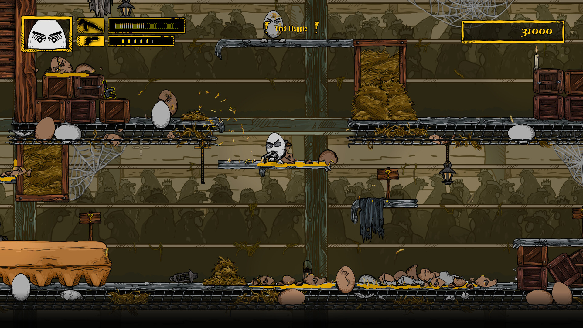 Crack your enemies with an arsenal of weapons and various tactics in this 2D egg-splosive, gore-filled, yet kid-friendly action platformer, teeming with splattering yolk and shattering eggshels and survive the fierce cage wars.