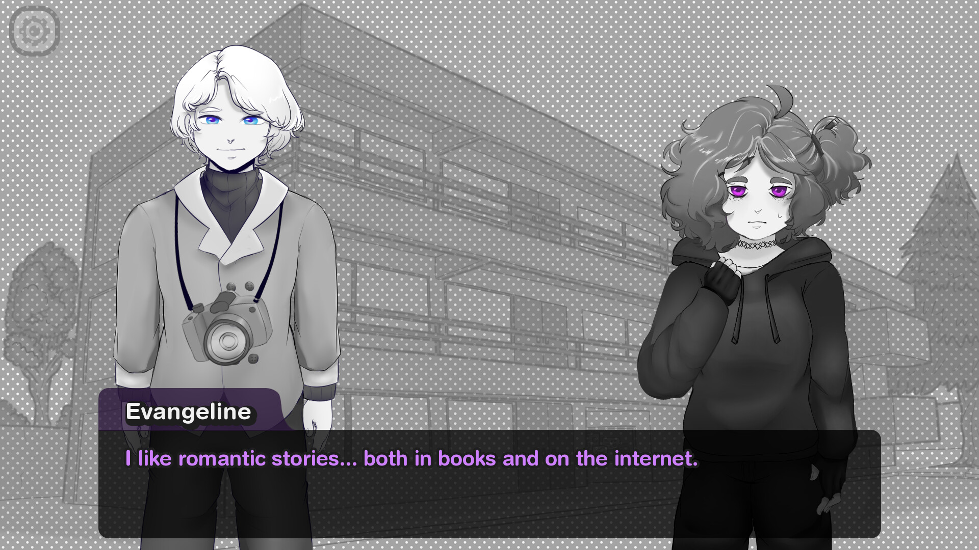 Broken & Loved is a visual novel which tells the story of  Evangeline and Rei (Default name), two university students who meet each other during their first day of classes, entangling their lives into a love story fill with reflection, drama, sweetness and happiness.