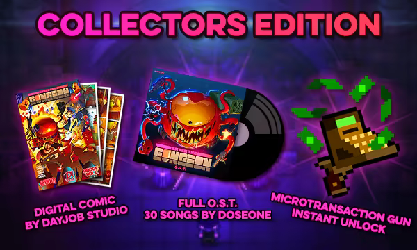 The Enter the Gungeon: Collector's Edition includes the game, the soundtrack, the digital comic, and an instant unlock of the Microtransaction Gun. Owners of the base game can upgrade to the Collector's Edition for the difference in price.