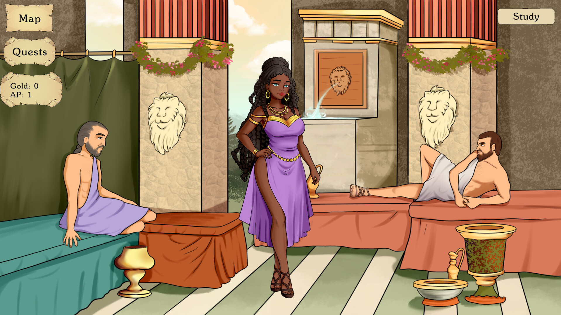 Cumming of Age is a visual novel game with a touch of resource management. In ancient Greece, you are surrounded by beautiful goddesses, attractive mythological creatures, enchanting soundtracks, and entertaining dialogues. You can upgrade your skills and earn your keep while building up your reputation with goddesses. There are Easter eggs, juicy gossip, and lewd details hidden around the city for you to find out.