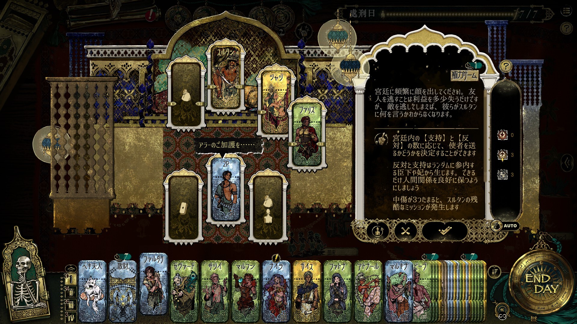 これは極限まで残酷なゲームです。あなたはスルタンの一時の楽しみのために自分の親族を殺すこともできれば、カードを言い訳に信頼する者に欲望を押し付けることもできます。