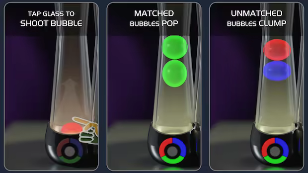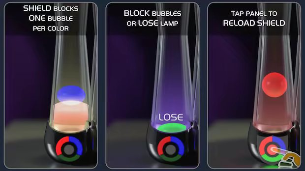 • Tap glass (or press button/key) to shoot a bubble from your lamp