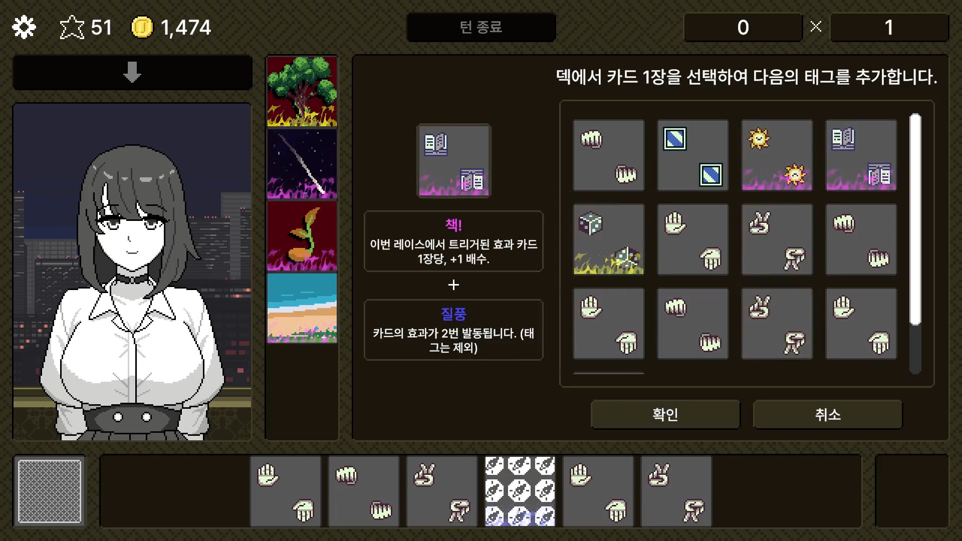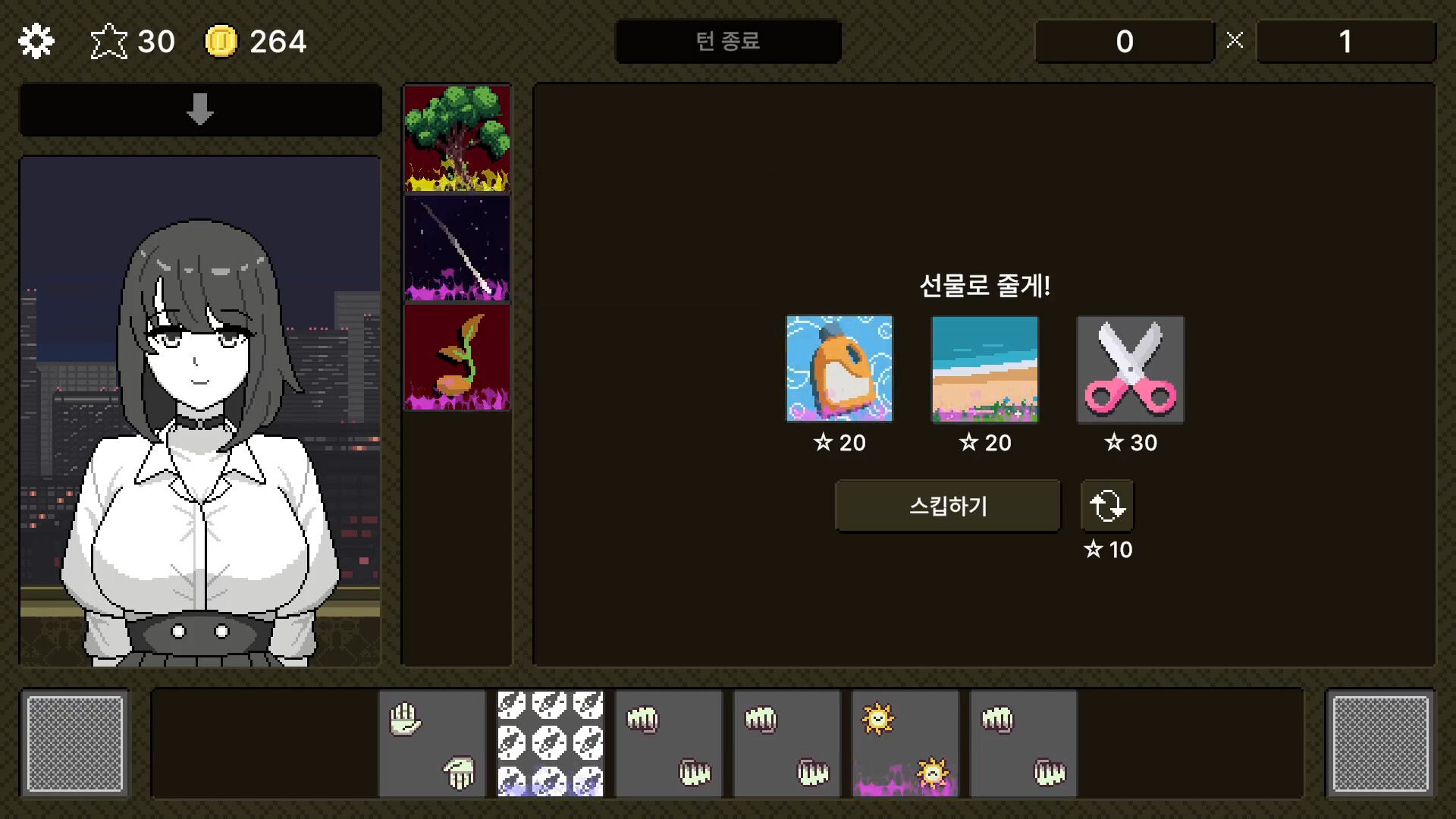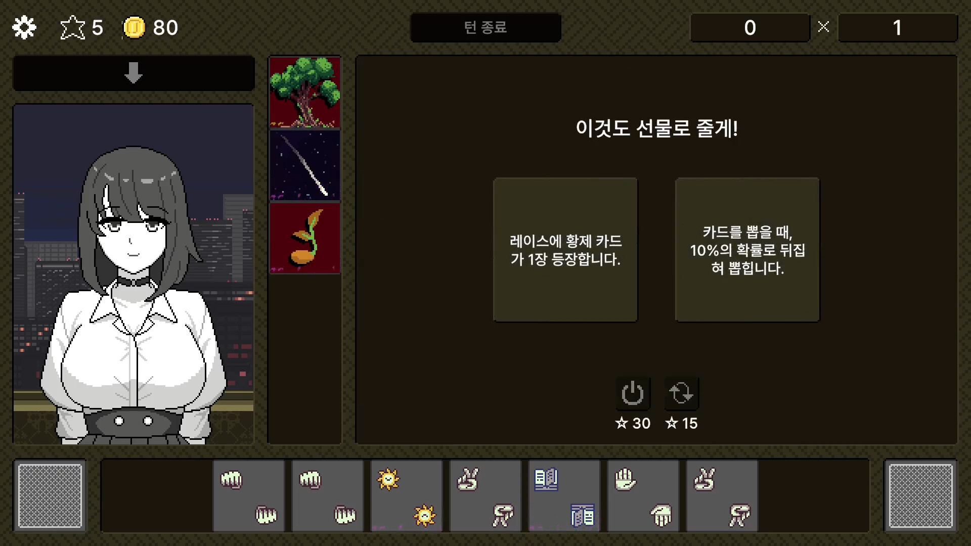 - 매 턴이 끝날 때마다 선물을 줄게! 네가 원하는 방향으로 덱을 만들어 봐!