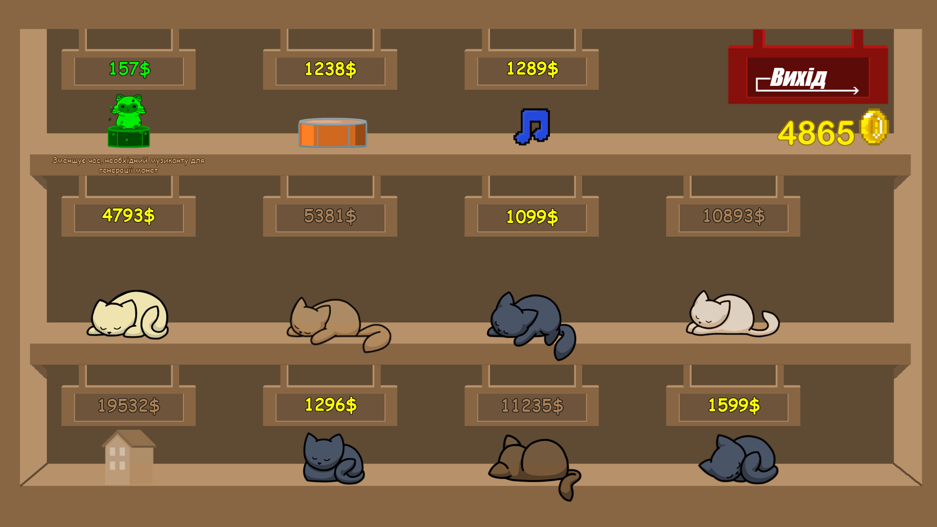 The King Cat Clicker - це гра типу IDLE, де ви клікаєте, щоб заробляти монети, і використовуєте накопичені гроші для придбання покращень, які допоможуть вам легко заробляти більше монет.