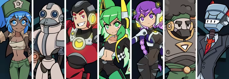 Complete the challenges as our protagonist, Rei! Rise to the top of the Valhalla City Robo Dome and meet a fun cast of characters along the way!