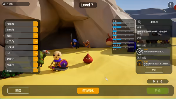 There are 6 types of monsters that need to be selected before the game starts. After clearing different levels of difficulty, new monsters will be unlocked one after another.