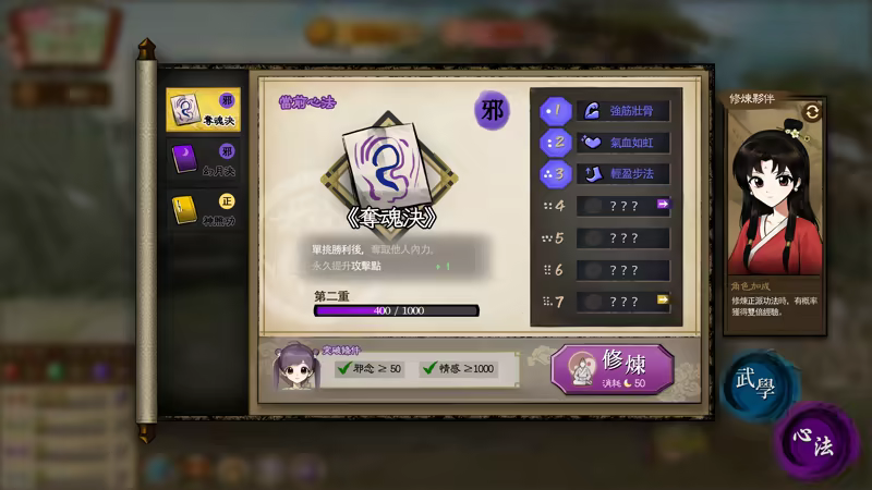 • 百家武學——不論名門正派或邪道秘傳,女兒既可拜師學藝、正統修行,亦可夜半偷師、以彼之道還施彼身!