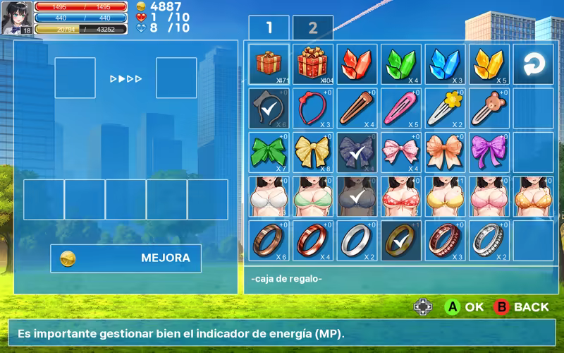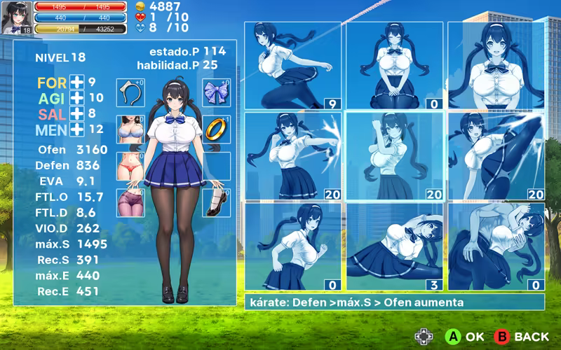 Puedes fortalecer a tu personaje usando puntos de estado y puntos de habilidad.