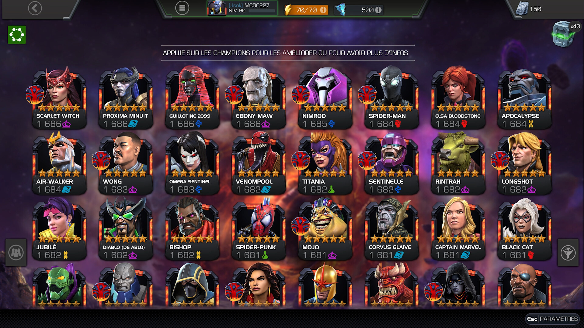 En tant qu'Invocateur choisi par le Collectionneur, assemble une équipe puissante à partir d'une liste de plus de 300 champions, dont les Avengers, les X-Men, les Gardiens de la Galaxie, les héros du Spider-Verse, et bien plus encore! Que tu fasses équipe avec Iron Man et Wolverine ou que tu opposes Deadpool à Venom, les combinaisons sont infinies et les enjeux élevés.