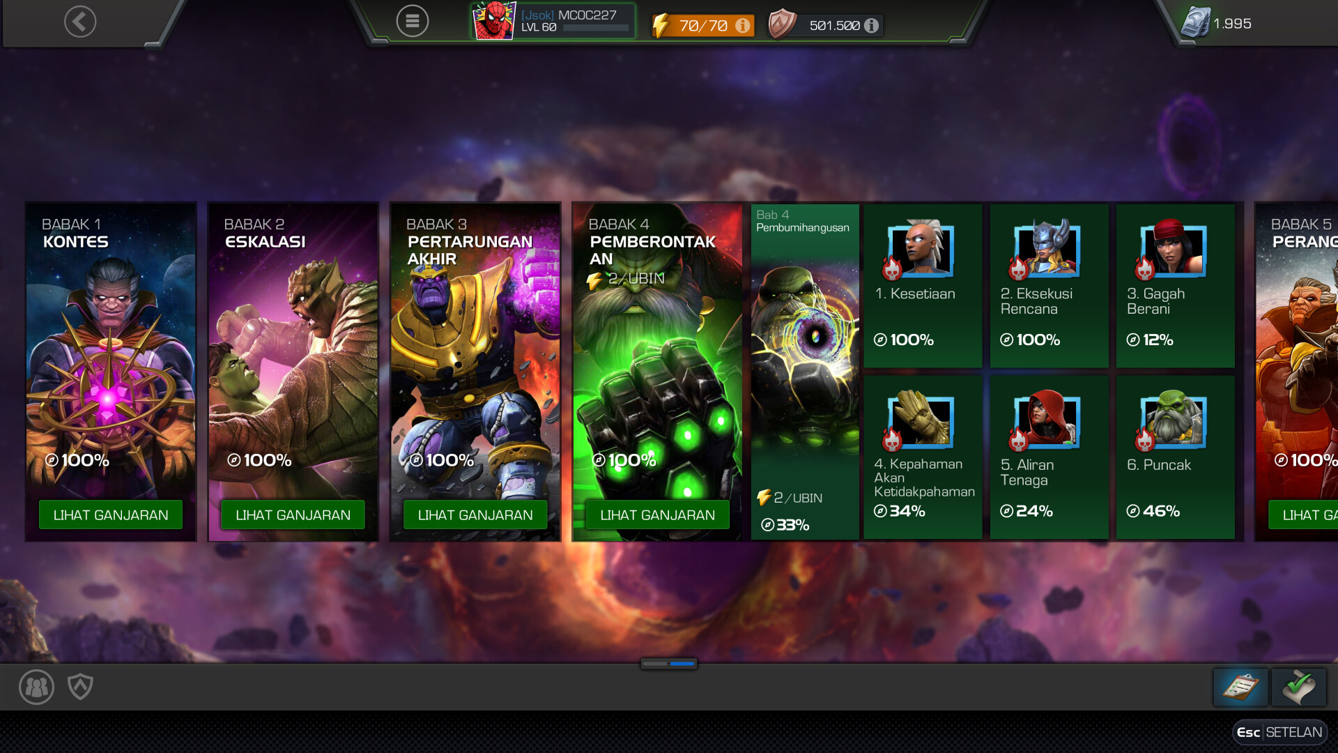 Permainan pertarungan Pahlawan Super Pamungkas kini hadir di Steam! Kumpulkan dan tingkatkan Pahlawan Super dan Penjahat ikonik dari Marvel Universe, terlibat dalam pertarungan 1v1 yang berlangsung cepat, dan lepaskan kemampuan yang kuat di Marvel Contest of Champions!