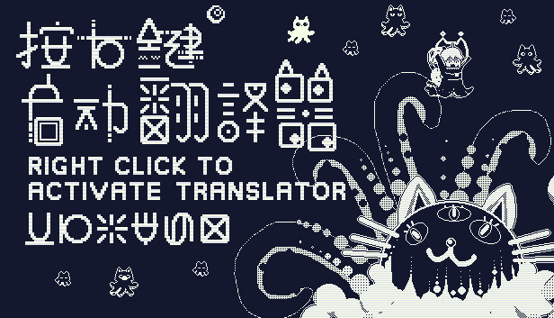 《按右键启动翻译器》是一款横版剧情向语言解谜游戏,在寻找失踪的宠物猫“小白”的途中,一定不会发生什么穿越到异世界然后面对陌生的语言和“章鱼猫”顺便要拯救世界这种王道征途的剧情吧……记住,“按右键启动翻译器”。