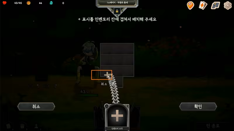 Как игра roguelike по созданию колоды на основе «инвентаря», каждая карта обладает разными способностями в зависимости от её расположения в инвентаре, окружающей среды и артефактов.