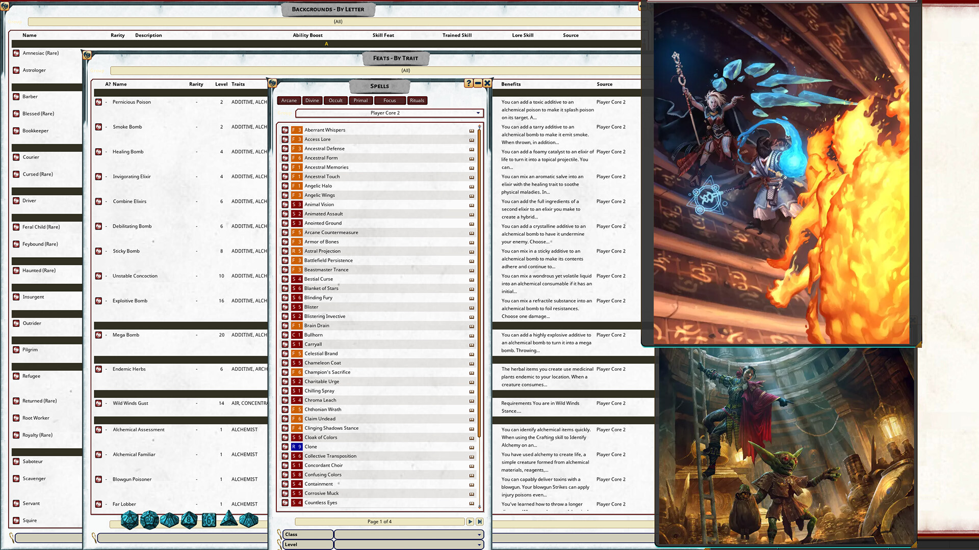 • Easy reference tabs to look up individual features or categories such as Ancestries, Deities, and Conditions