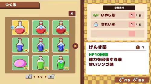 本作は探索時に入手した素材からアイテムを作ることができます。