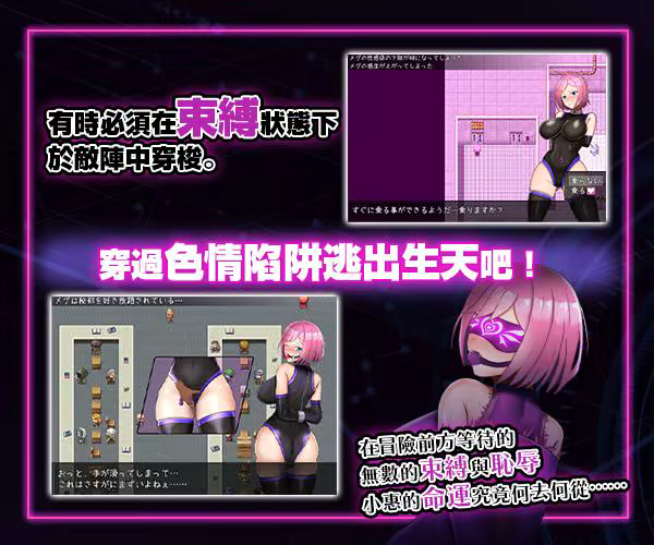在某些事件中也有逃脫遊戲橋段,必須在束縛狀態下穿過色情陷阱想辦法逃出生天。