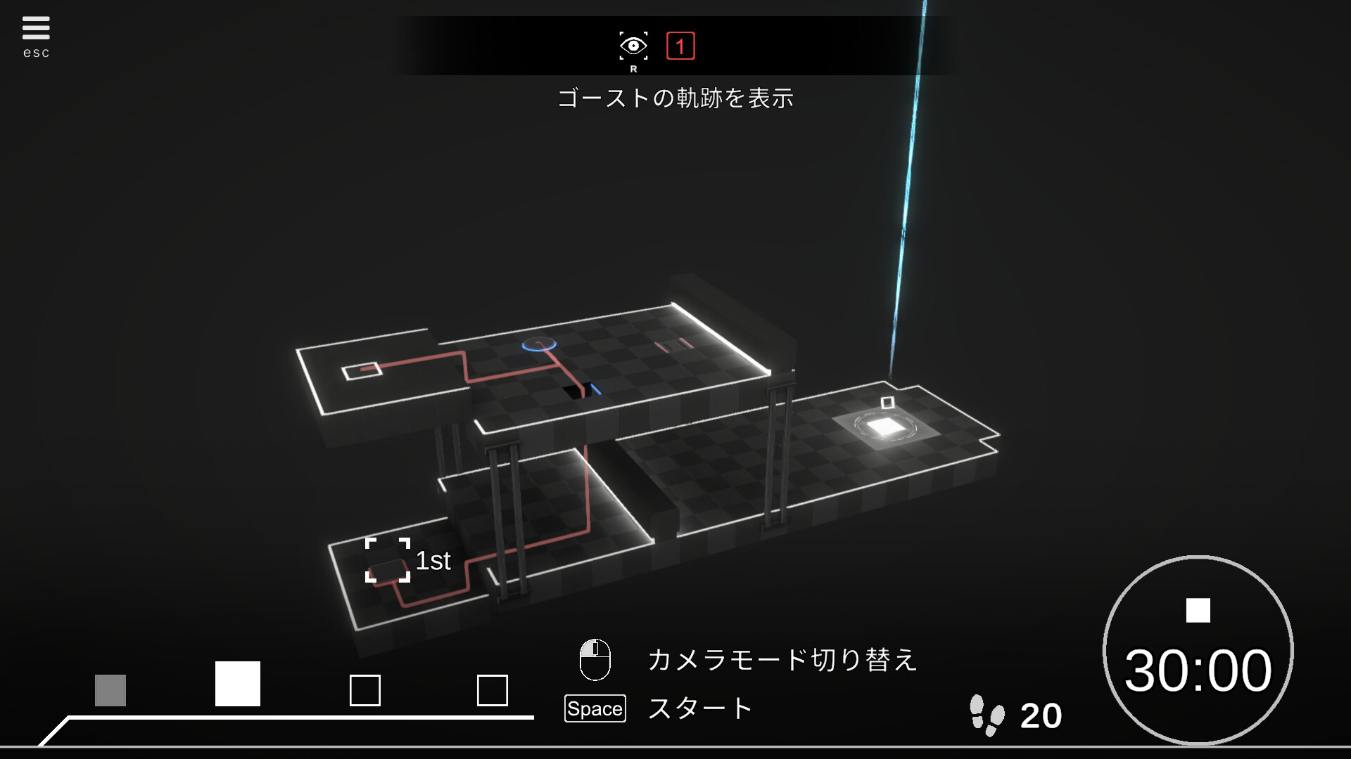 「CUPLEX」は"過去の自分"と協力して攻略していく、ステージクリア型の3D時間差アクションパズルゲームです。以後のターンでの"自身の分身"の動きを予測し、行動することで、複雑でありながら整然としたパズルを楽しむことができます。