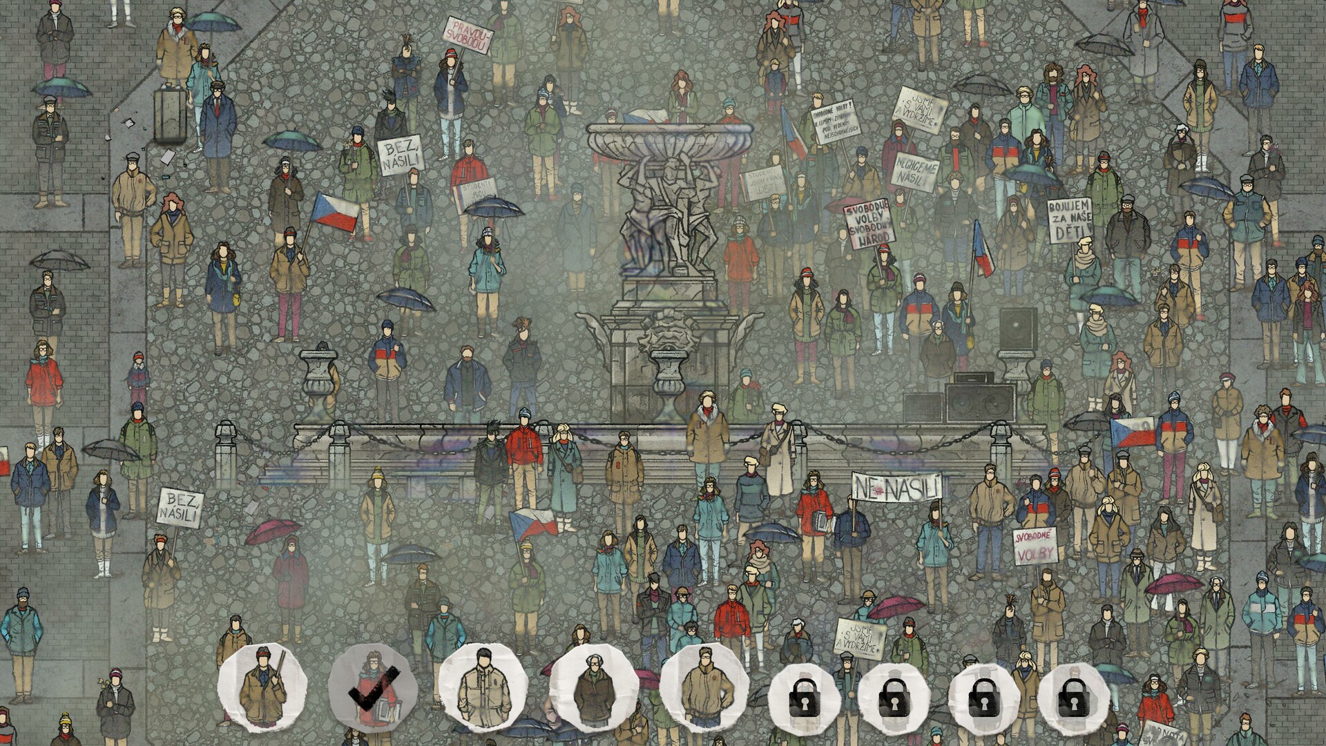“Find the correct characters in the background of huge protests around Czechia during the end of USSR. Sort of complex finding Waldo where you can learn from real footage and witness what happened.”