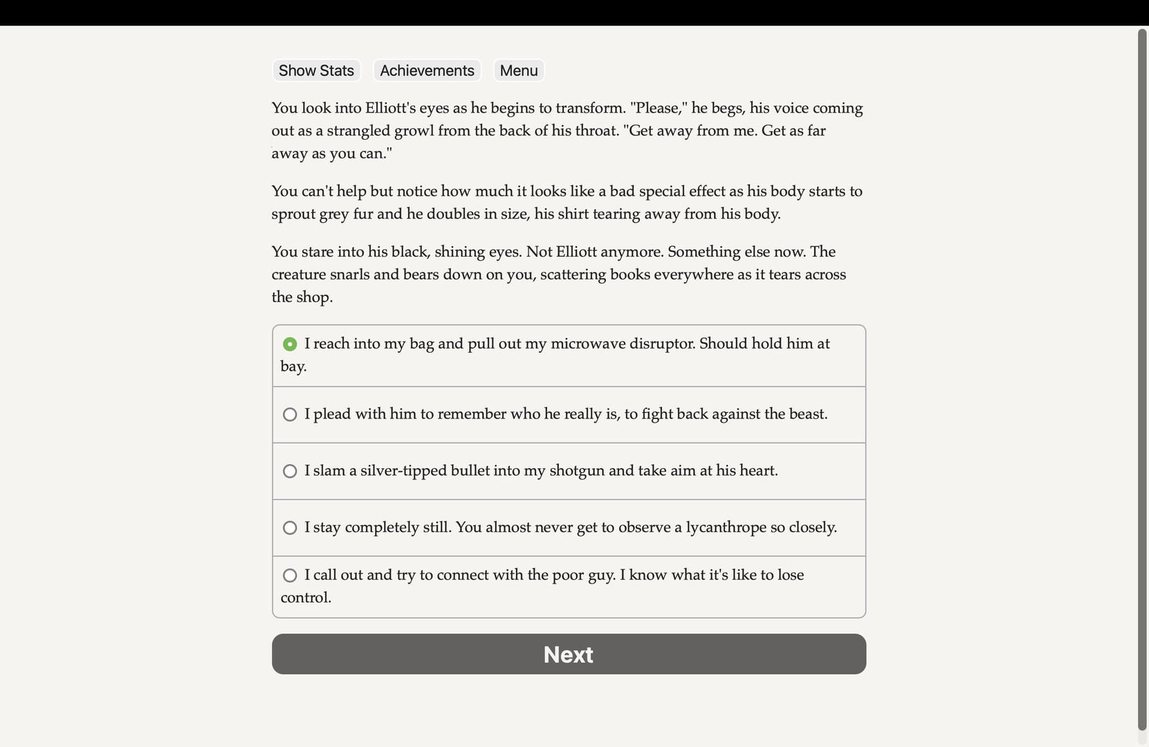 These monsters aren’t just in the movies! Will you hunt the vampires, werewolves and others stalking Hollywood, or will you become a monster instead? An interactive, text-based game set in the World of Darkness shared story universe.