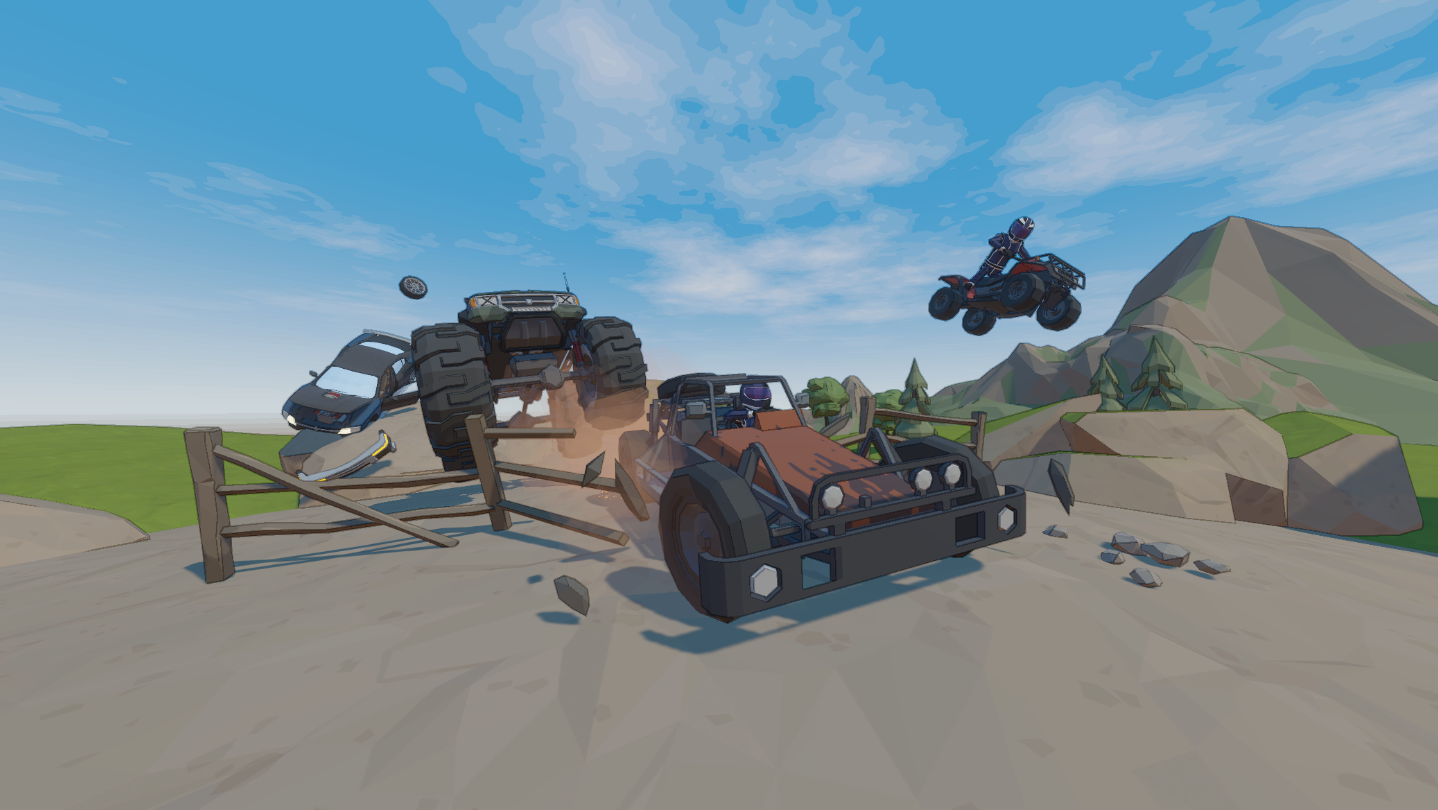 Join an intense off-road race where 16 vehicles collide! Compete with buggies and monster trucks through forests and canyons. Destroy courses and rival cars to reach the top!