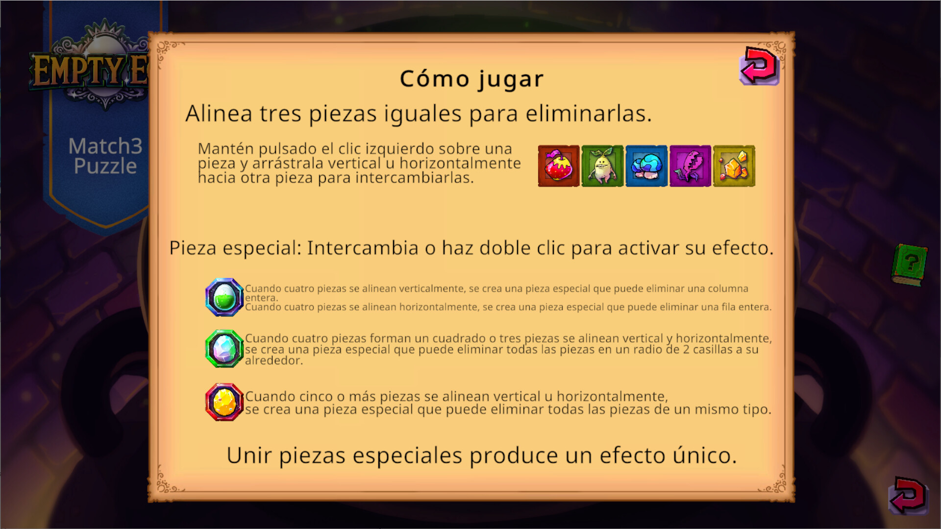 Actualmente, puedes jugar a un "ataque de puntuación de 3 minutos" en un rompecabezas donde debes alinear y eliminar tres o más piezas del mismo tipo.