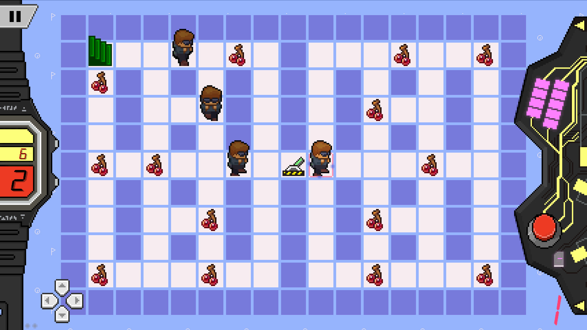 Activate the switches and reach the exit before the time is up. Each move costs 1 second. The time limit is indicated by the watch. Leap into to past to succeed.
