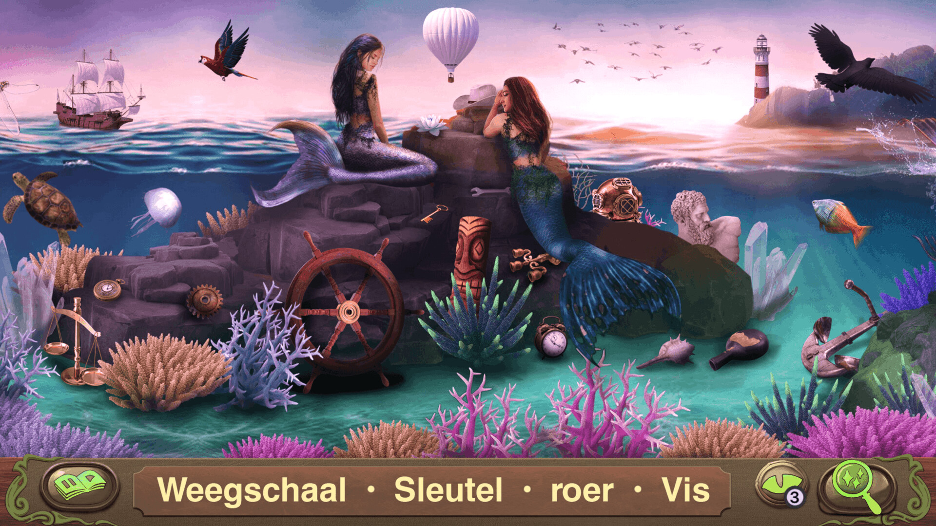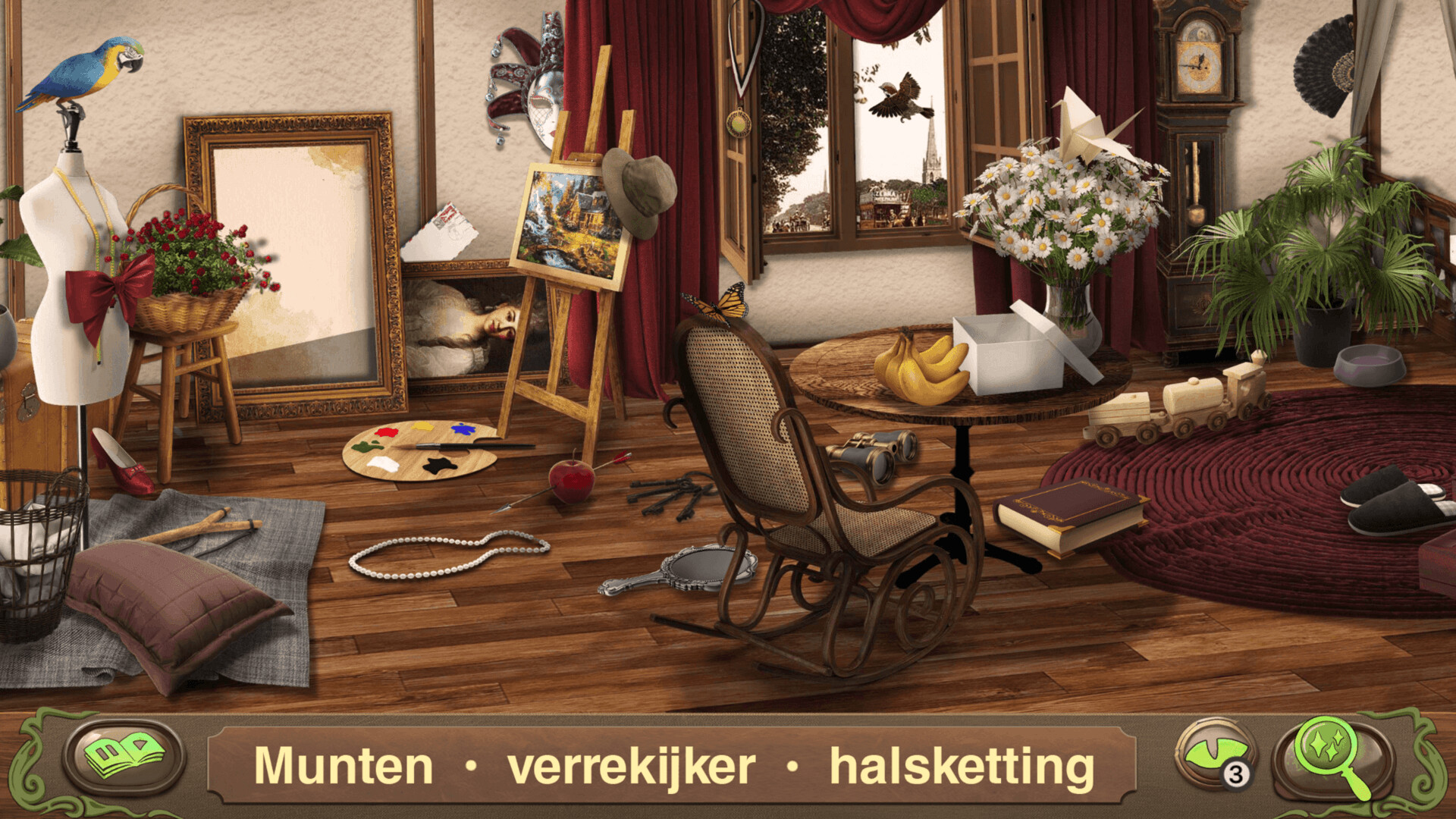 - Je kunt voor elke locatie uit verschillende sets uitdagingen kiezen: zoeken naar verborgen voorwerpen, de verschillen ontdekken, zoeken op silhouet en puzzels.