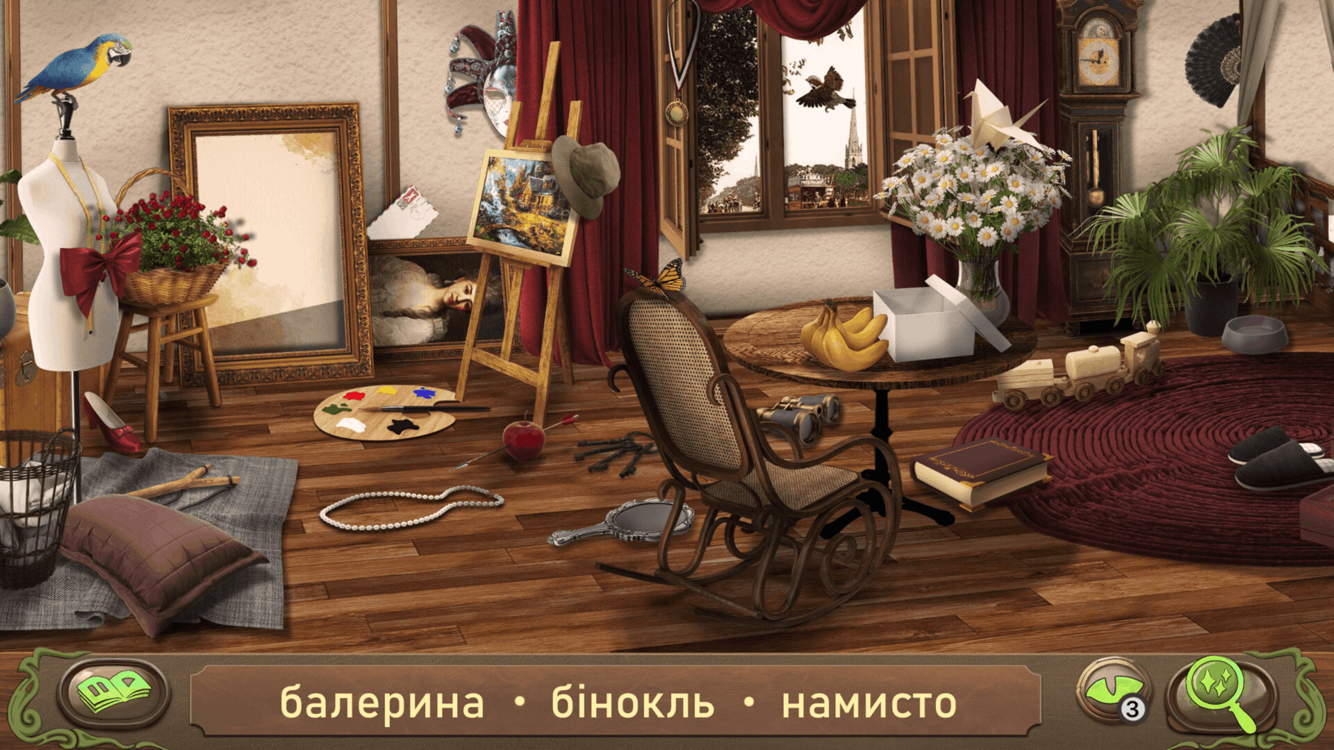- Ви можете вибирати між різними наборами завдань для кожної локації: пошук прихованих предметів, виявлення відмінностей, пошук за силуетом і головоломки.