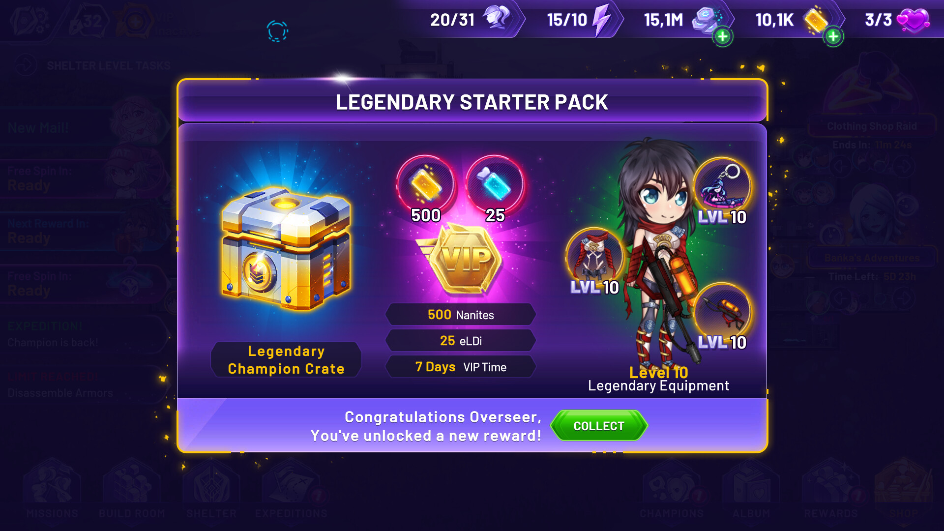 • Legendary equipment set on level 10 - to give this new champion something to wear during upcoming battles.