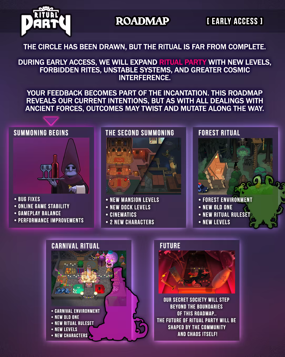 “We currently expect Ritual Party to remain in Early Access for 6–10 months, depending on community feedback and development progress.