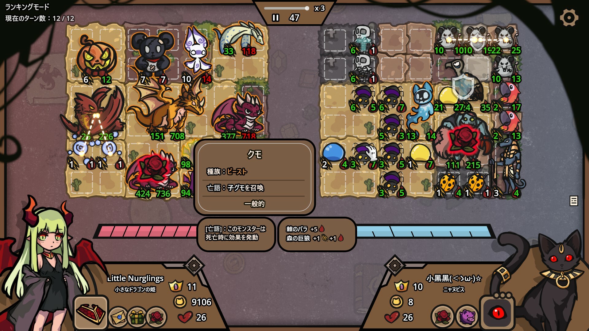 各バトルでは前列のモンスターが優先して攻撃とダメージを受けますが、後列を優先して狙うモンスターもいます。攻撃順序を予測しながら、タンクを先陣に立たせるか、アサシンで後列を一気に潰すかを選択し、部隊の配置と戦略を駆使してさらなる可能性を探求しましょう!