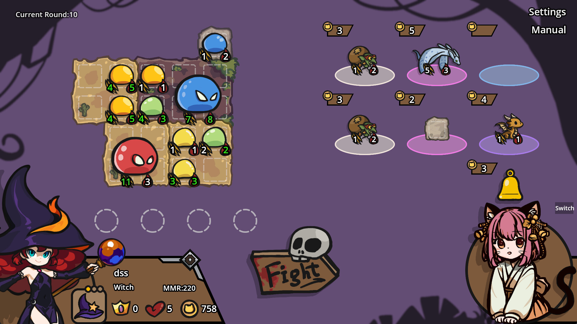 In this game, you can buy various monsters from the store and deploy them onto the field, then battle against other players!