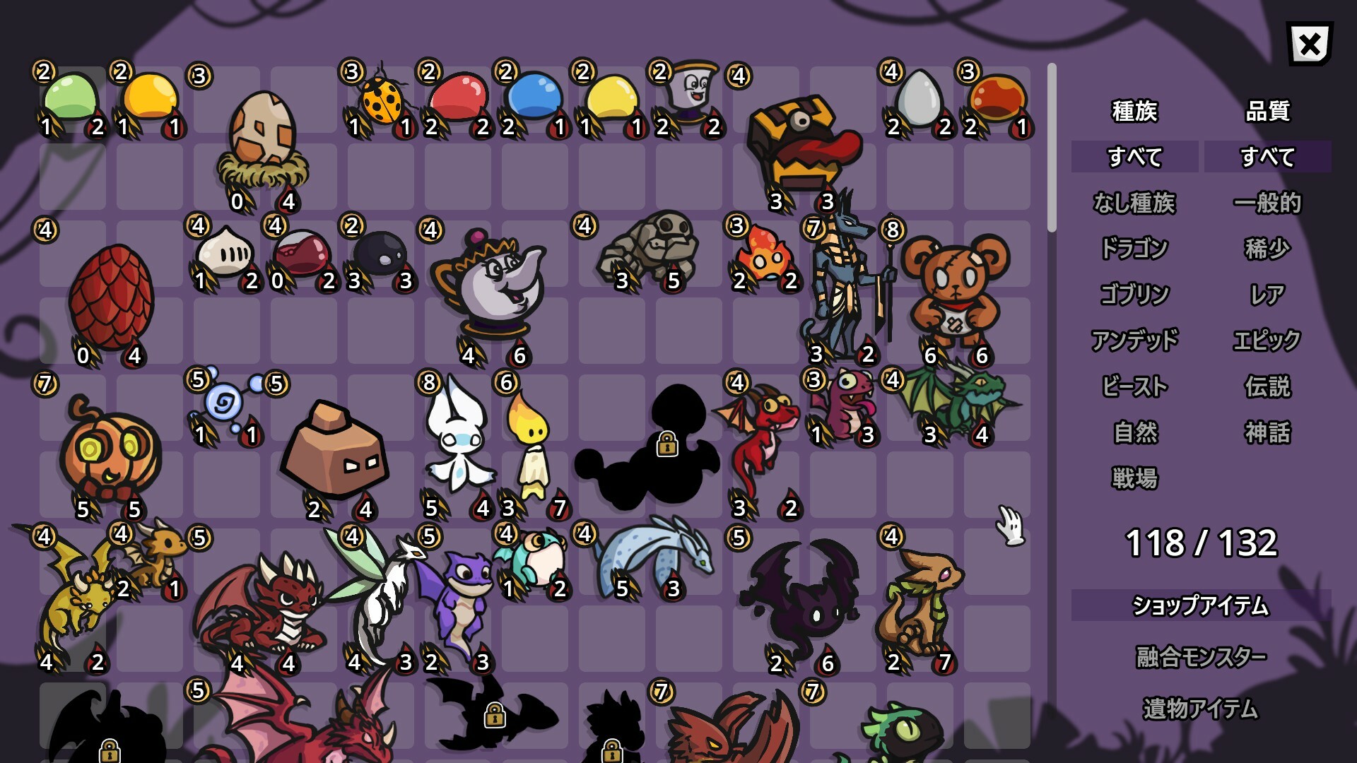 『バックパックモンスター』の世界には、アンデッド、ビースト、亡霊、そして謎のたまごなど、さまざまな生物が存在します。同じ種族のモンスターを編成することで、より強力な力を発揮します。新たな組み合わせを発見し、あなたの最強チームを目指しましょう!