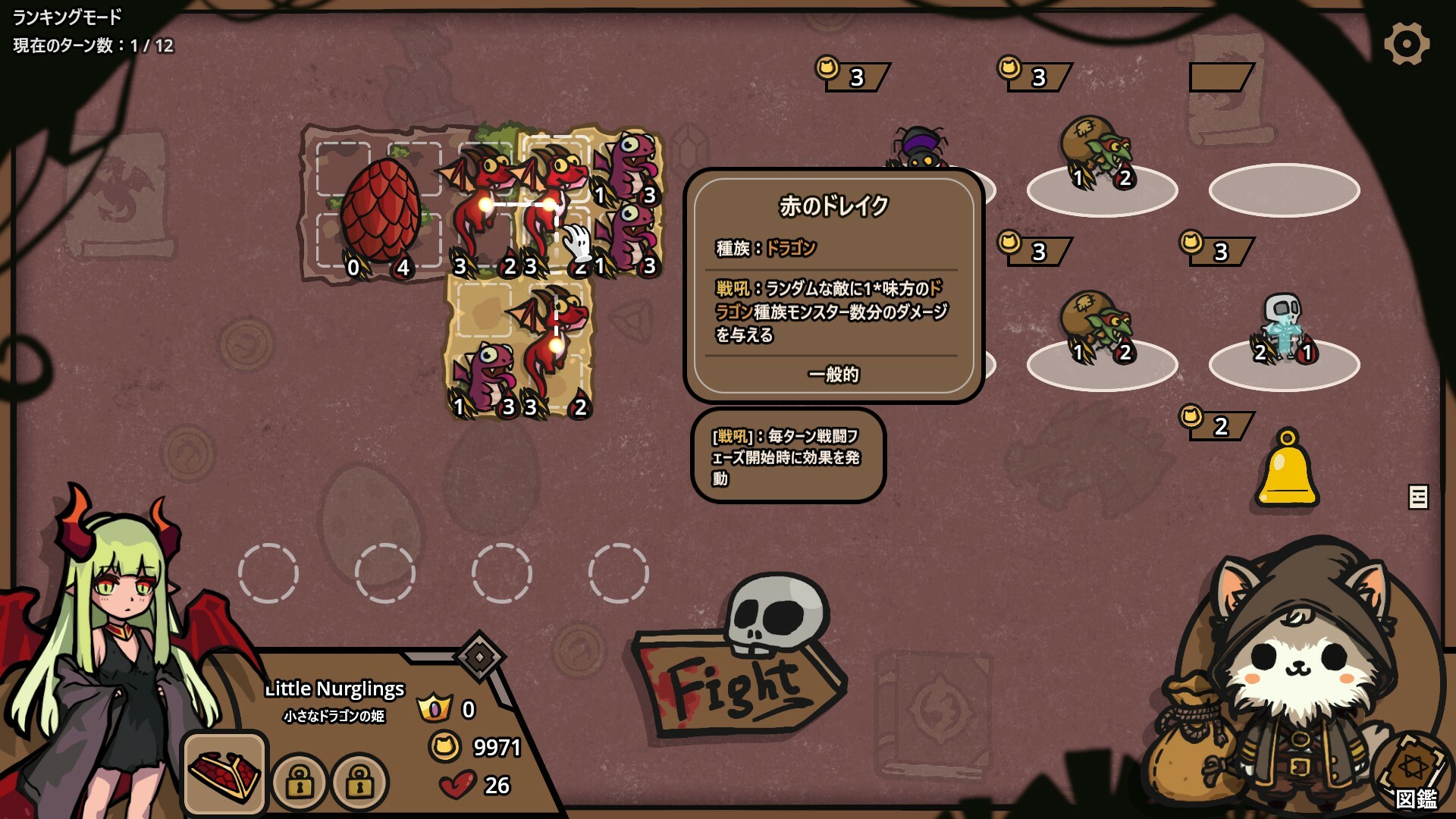 異なるモンスター同士を融合させることで進化が可能です。組み合わせを活用すれば、次のターンで進化が完了し、さらに強力なモンスターへと成長します。究極モンスターを生み出して戦場を席巻しましょう!
