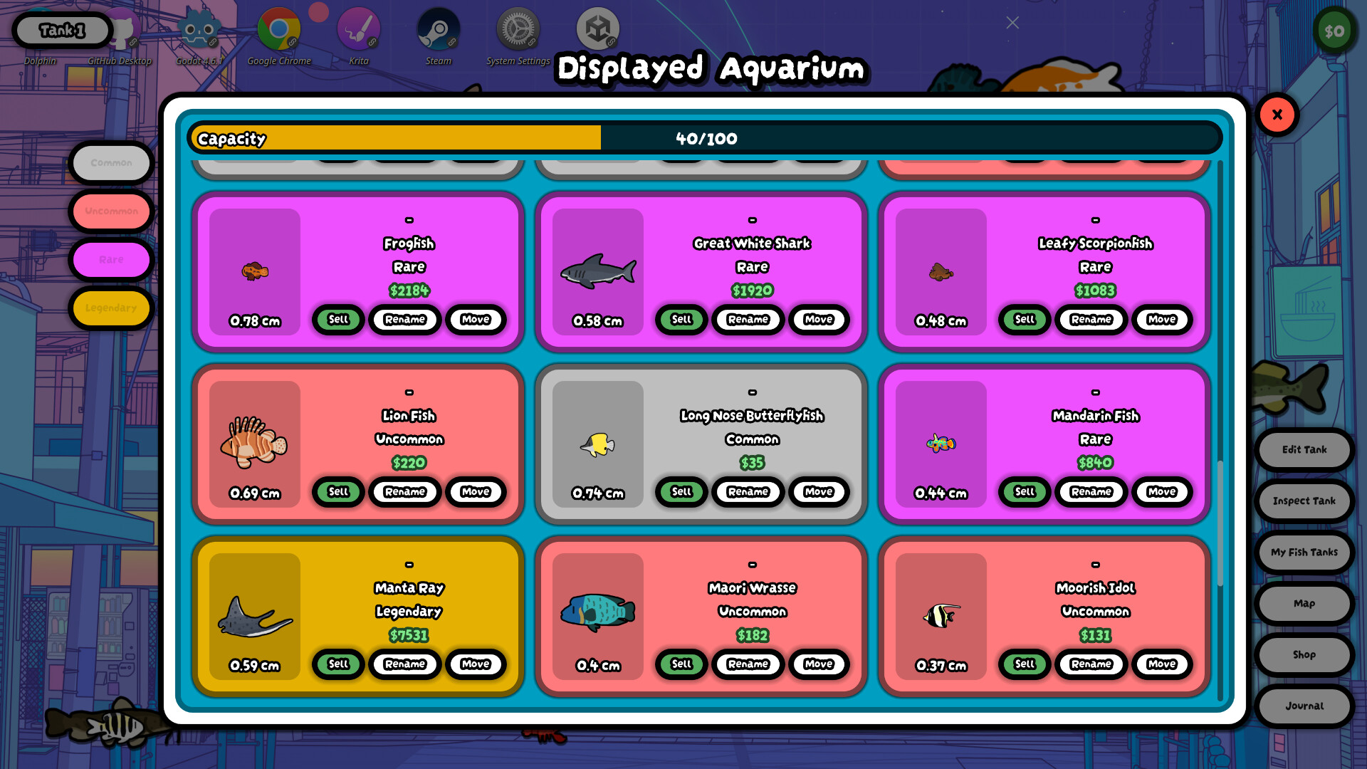 This game is largely inspired by elements from other cozy games and mixing it with my dream of having my own Fish Aquarium.