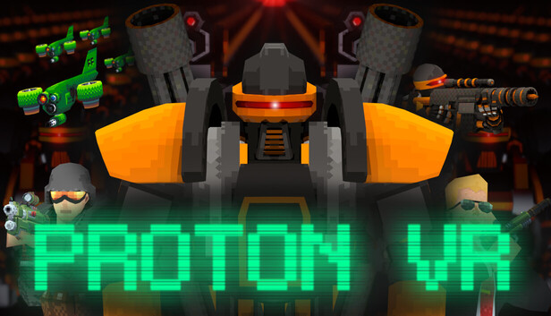 An indie solo-developer dream game: Inspired by the 90s vision of futuristic battles, robots, lasers, and space, ProtonVR will throw you into no-nonsense action-movie hero mode.