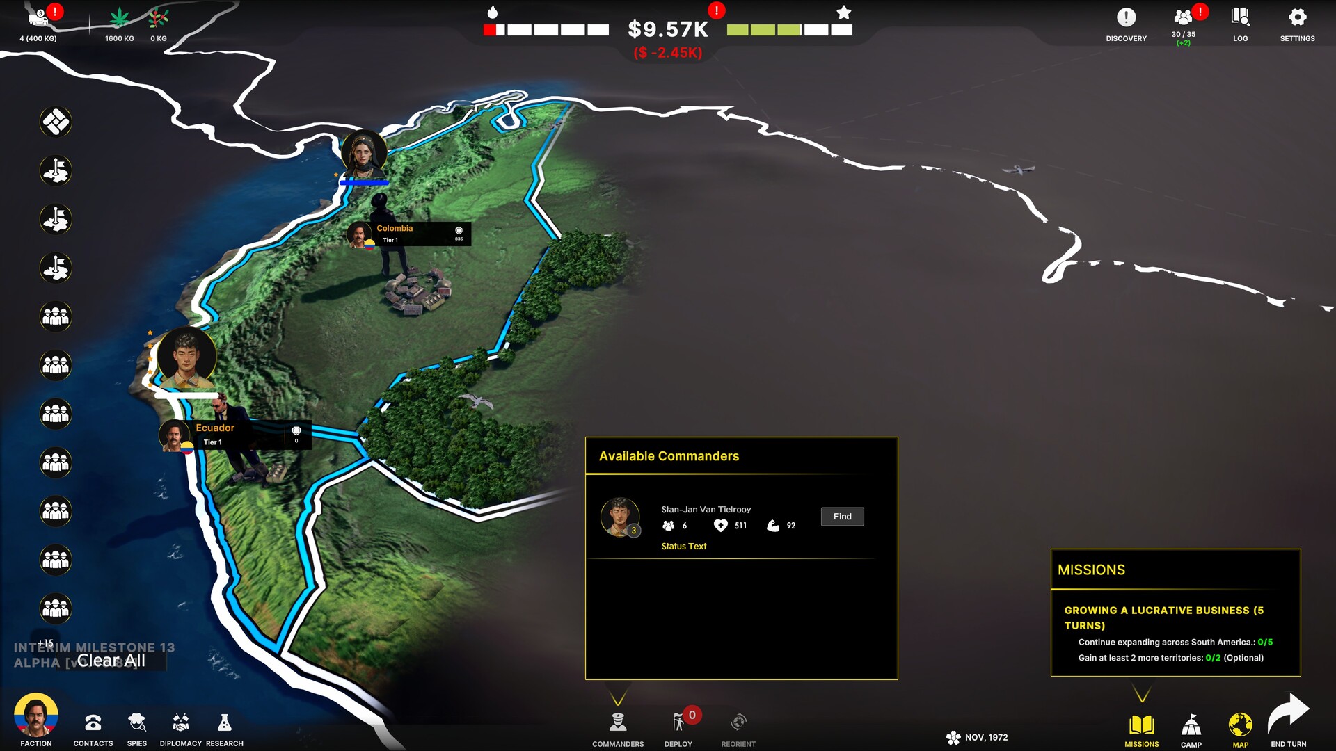 Choose your base from three distinct maps - Colombia, North Korea, or Nigeria. Build your operations including farming, production, packaging, and transport. With money rolling in, you’ll need to fortify your territory with defensive structures, traps, and armed protection to keep rival cartels and law enforcement at bay. Each region offers new powerful figures to work as, utilizing natural resources and navigating the market challenges unique to their burgeoning empire. With efficient supply, you’ll need to grow your territories and meet your customers’ constant demand.